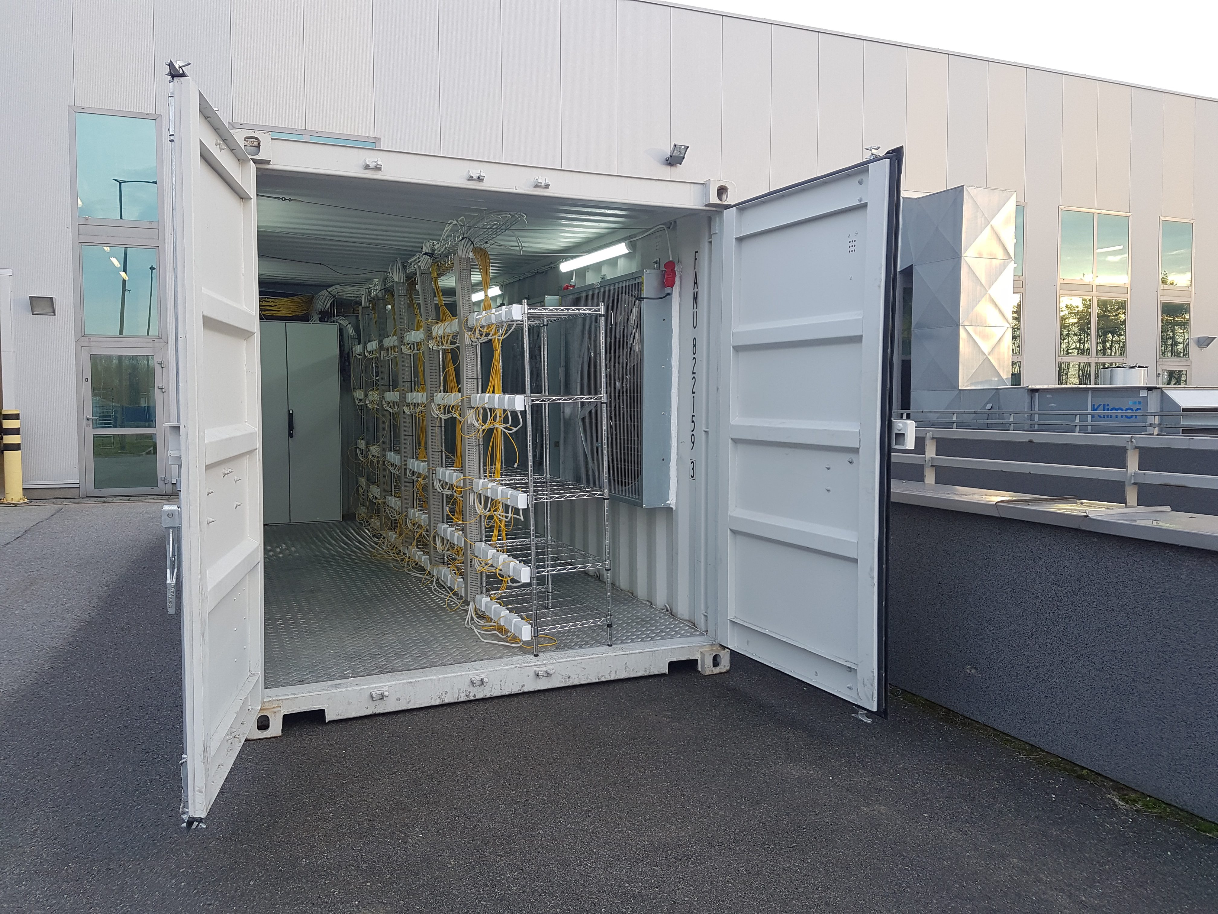 Kontener miningowy oferuje pełną mobilność naszej farmy. Jest przystosowany dla 400