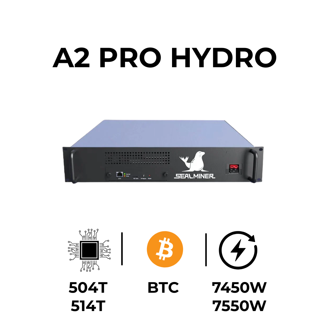 SealMiner A2 Pro Hydro to zaawansowana koparka ASIC stworzona do wydobywania kryptowalut opartych na algorytmie SHA-256, takich jak Bitcoin (BTC). Zapewnia wysoką moc haszującą na poziomie 504T lub 514T przy zużyciu energii około 7450W lub 7550W, co czyni ją jedną z najwydajniejszych koparek z chłodzeniem wodnym na rynku.